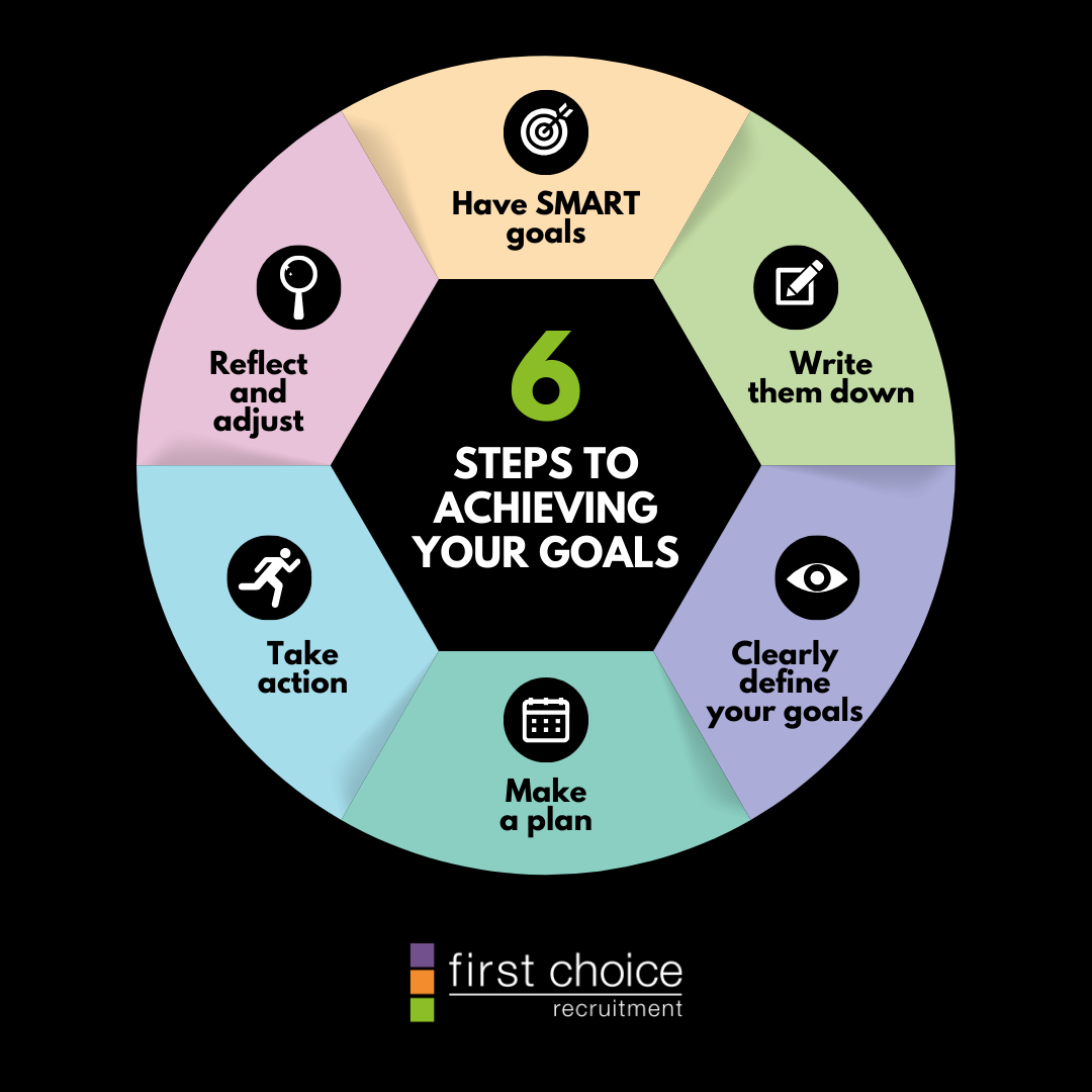 If you’re looking for guidance on setting your career goals or need support in finding your next opportunity, get in touch with us at First Choice Recruitment. We’re here to help!